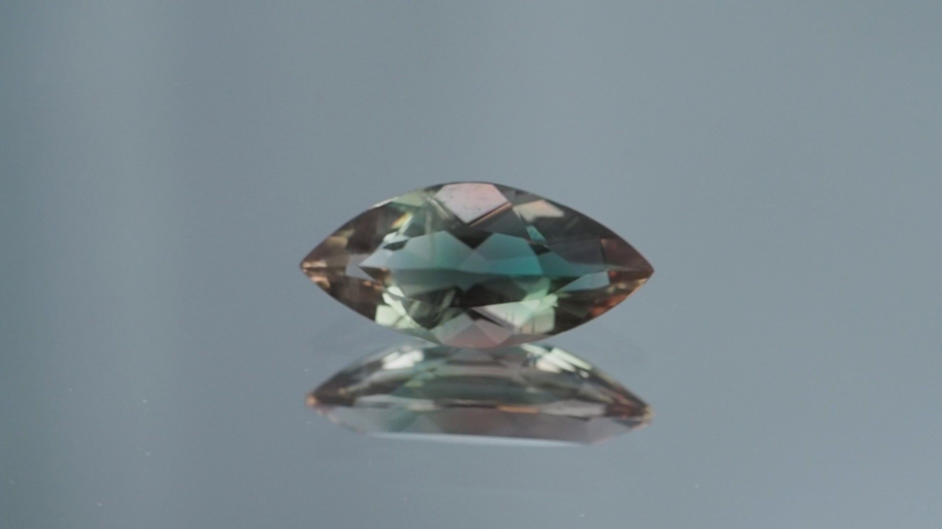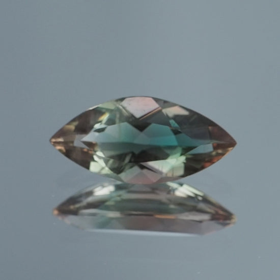 This 2.15 carat green-champagne marquise-cut Oregon Sunstone, measuring 14.30mm x 6.70mm is a gem of exquisite beauty and unique charm. Its delicate blend of green and champagne hues evokes the natural tranquility of Oregon's landscapes, with shades ranging from lush moss to soft mint complemented by warm, sparkling undertones. The marquise cut enhances the gem's graceful shape, featuring elongated curves that capture and reflect light beautifully, revealing its inner radiance and subtle color variations. This Sunstone is ideal for creating elegant and sophisticated jewelry pieces, where its distinctive color palette and polished brilliance will undoubtedly captivate and enchant admirers.