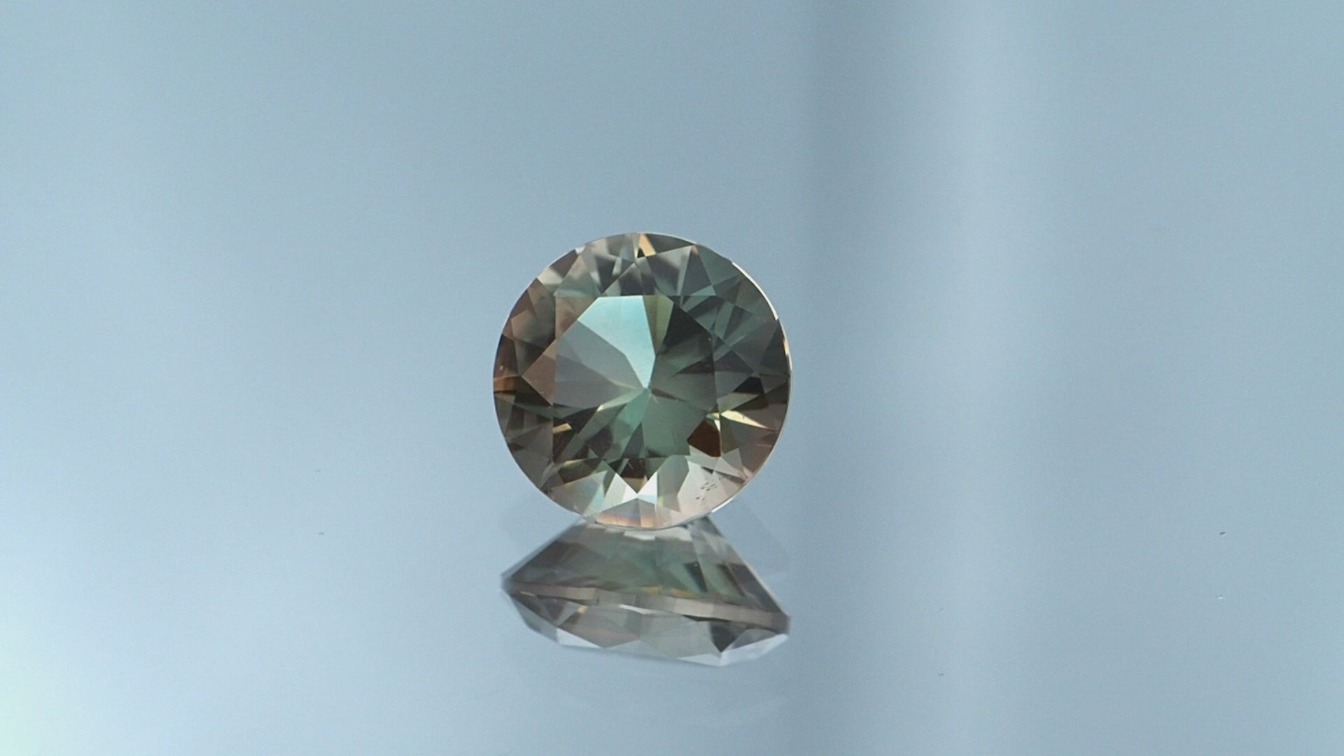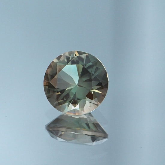 This 3.32 carat, 10mm round-cut Oregon Sunstone in a delightful light green and champagne hue is a gemstone of unparalleled beauty and sophistication. The light green tones evoke the fresh vibrancy of Oregon's pristine landscapes, ranging from subtle mint shades to soft, mossy greens, while the champagne hues add a touch of warmth and elegance reminiscent of fine bubbly. The round cut enhances the gem's natural brilliance and symmetry, allowing light to dance across its facets and reveal a mesmerizing play of colors. Its impeccable clarity and smooth, polished surface make it a perfect choice for creating exquisite jewelry pieces that will undoubtedly captivate with their unique charm and allure. Its rarity and distinctive color combination make it a prized gemstone for collectors and connoisseurs seeking something both exceptional and environmentally conscious, as Oregon Sunstones are responsibly sourced in small-scale operations.