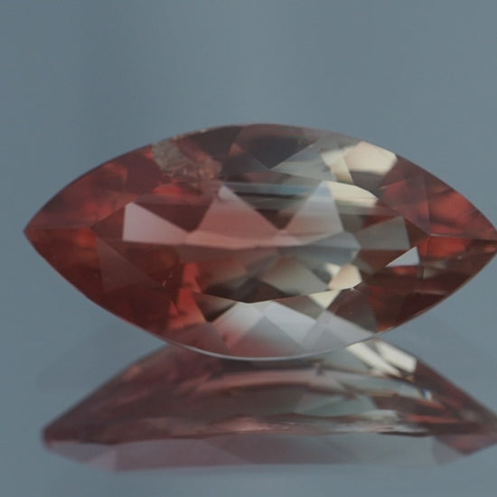 This 4.62 carat marquise-cut Oregon Sunstone, measuring 18.07mm by 8.97mm, showcases a captivating blend of green and peachy-red hues, accentuated by mesmerizing schiller inclusions. The gem's green tones range from subtle mossy shades to deeper emerald hues, evoking the lush forests and natural landscapes of Oregon. Intertwined with these greens are peachy-red accents that add warmth and vibrancy, reminiscent of a sunset's glow over the Pacific Northwest. The marquise cut enhances the Sunstone's elegance with its elongated shape and pointed ends, allowing light to play across its facets and illuminate its inner brilliance. The presence of schiller within the stone adds a unique dimension, creating iridescent flashes of light that enhance the gem's overall allure. Mined from Oregon's volcanic terrain, this 4.62 carat Oregon Sunstone with schiller is a rare find cherished for its distinctive color combination and natural beauty. Whether set as a statement piece in a ring to showcase its size and vibrant colors or as a pendant where its elegant silhouette can catch and reflect light, this Sunstone promises to captivate with its natural charm and timeless appeal, making it a prized addition to any fine jewelry collection.