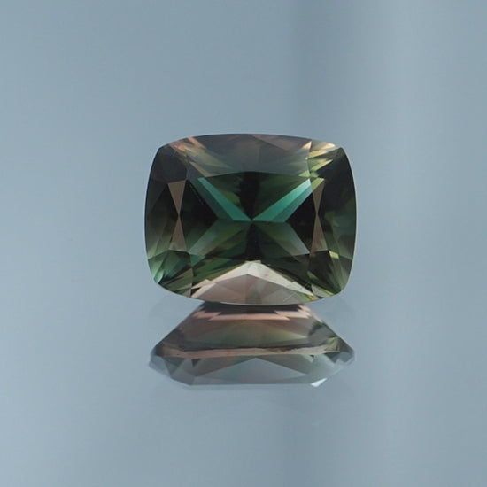 This 3.66 carat, 11.08mm x 8.97mm green cushion-cut Oregon Sunstone is a striking gemstone that exudes a tranquil and captivating allure. Renowned for its vibrant green hues ranging from soft, mossy tones to deeper emerald shades, this gem captures the essence of Oregon's lush landscapes and verdant forests. The cushion cut enhances its natural brilliance, allowing light to penetrate deep within the stone and illuminate its internal facets, creating a mesmerizing play of color and sparkle. Its clarity and smooth surface make it a perfect choice for statement jewelry pieces, where its size and color can shine brightly as the focal point. Whether set in a ring, pendant, or earrings, this green cushion-cut Oregon Sunstone promises to enchant with its natural elegance and timeless appeal.