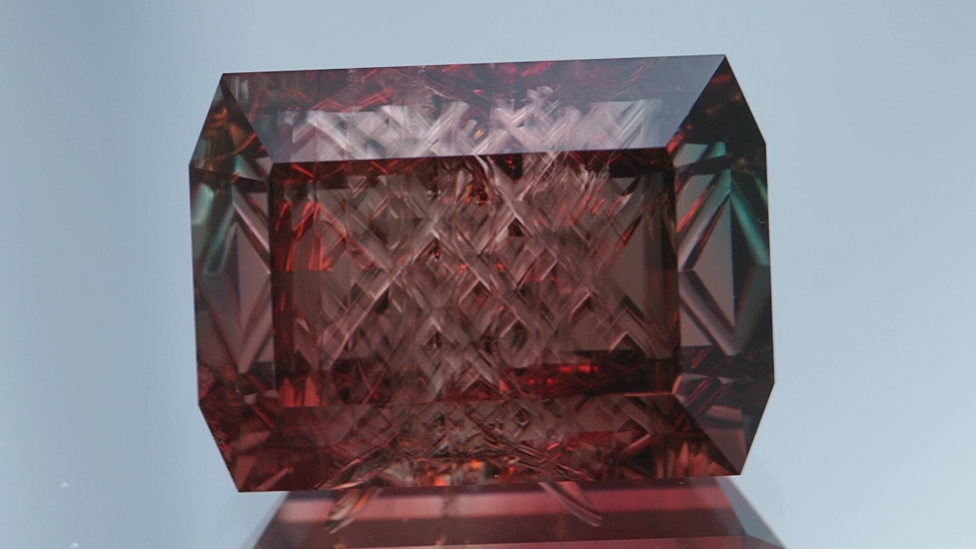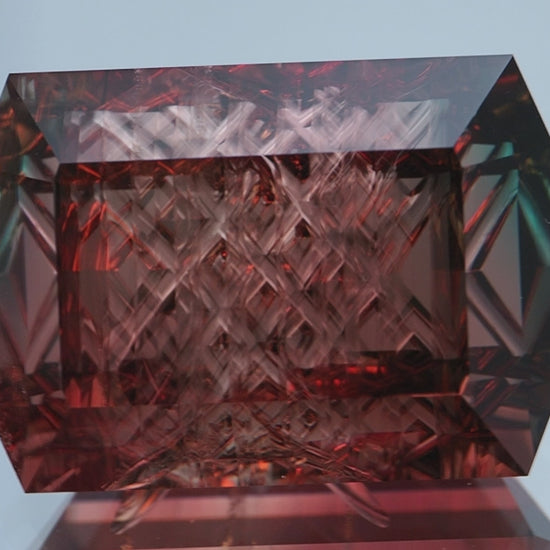 This 22.92 carat modified emerald fantasy cut Oregon Sunstone is a stunning fusion of vibrant reds and lush greens, crafted into a shape that defies convention. Its unique cut, reminiscent of an emerald with a fantasy twist, enhances its allure by creating mesmerizing patterns of light and color. The red hues, deep and intense like the heart of a flame, are complemented by vivid flashes of green that shimmer with every movement. This Sunstone is a true marvel of lapidary artistry, designed not only to dazzle but also to evoke a sense of wonder at nature's creativity. Mined from the mineral-rich grounds of Oregon, this gemstone embodies the raw beauty and geological richness of its birthplace. Its substantial size ensures it commands attention, making it a prized centerpiece for any collection or jewelry piece. Whether admired for its intricate cut, its bold color palette, or its natural brilliance, this Oregon Sunstone stands as a testament to both the Earth's natural treasures and the skilled craftsmanship required to reveal its full splendor.