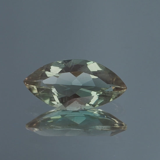 This 2.12 carat champagne-green marquise-cut Oregon Sunstone, measuring 14.25mm by 6.94mm, is a remarkable gemstone that blends elegance with a subtle, sophisticated charm. Its champagne tones exude warmth and refinement, reminiscent of the effervescence of fine champagne, while the delicate green hues evoke the tranquility of Oregon's natural landscapes. The marquise cut enhances the gem's allure with its distinctive elongated shape and pointed ends, allowing light to play across its facets and highlight its inner brilliance. This Sunstone's size and unique color palette make it a versatile choice for creating statement jewelry pieces that capture attention with their understated beauty and timeless appeal.