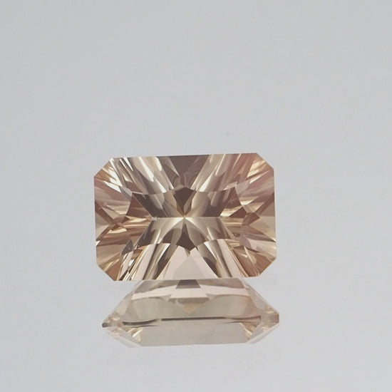 Discover the exquisite charm of this 5.51 carat Oregon sunstone, featuring a refined concave emerald cut with dimensions of 13.58mm by 9.37mm. This gem showcases a delicate champagne color, offering a soft and radiant glow that enhances its overall elegance. The concave emerald cut highlights the sunstone’s inherent brilliance, creating a striking play of light and depth. This cut not only accentuates the gem’s rich, warm hue but also adds a sophisticated touch to its appearance. Hailing from the renowned mines of Oregon, this sunstone exemplifies exceptional quality and artistry. Its elegant shape and beautiful champagne tone make it a perfect choice for a distinguished piece of jewelry, whether as a centerpiece in a ring, a charming pendant, or a custom-designed creation.