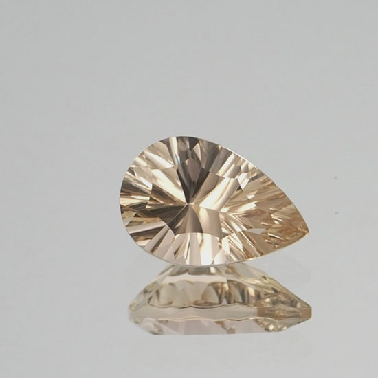 Discover the refined beauty of this 5.09 carat Oregon sunstone, featuring a gracefully cut concave design. With its exquisite pear form, this gem displays a warm champagne hue, offering a delicate and inviting radiance. The concave cut enhances the sunstone's natural brilliance, allowing its soft, golden tones to gleam with an enchanting light play. This unique cutting technique provides a sophisticated and captivating visual effect. Originating from Oregon’s esteemed mines, this sunstone is a perfect example of both natural allure and expert craftsmanship. Its gentle color and distinctive cut make it an ideal choice for a timeless piece of jewelry, whether set in a classic ring or an elegant pendant.