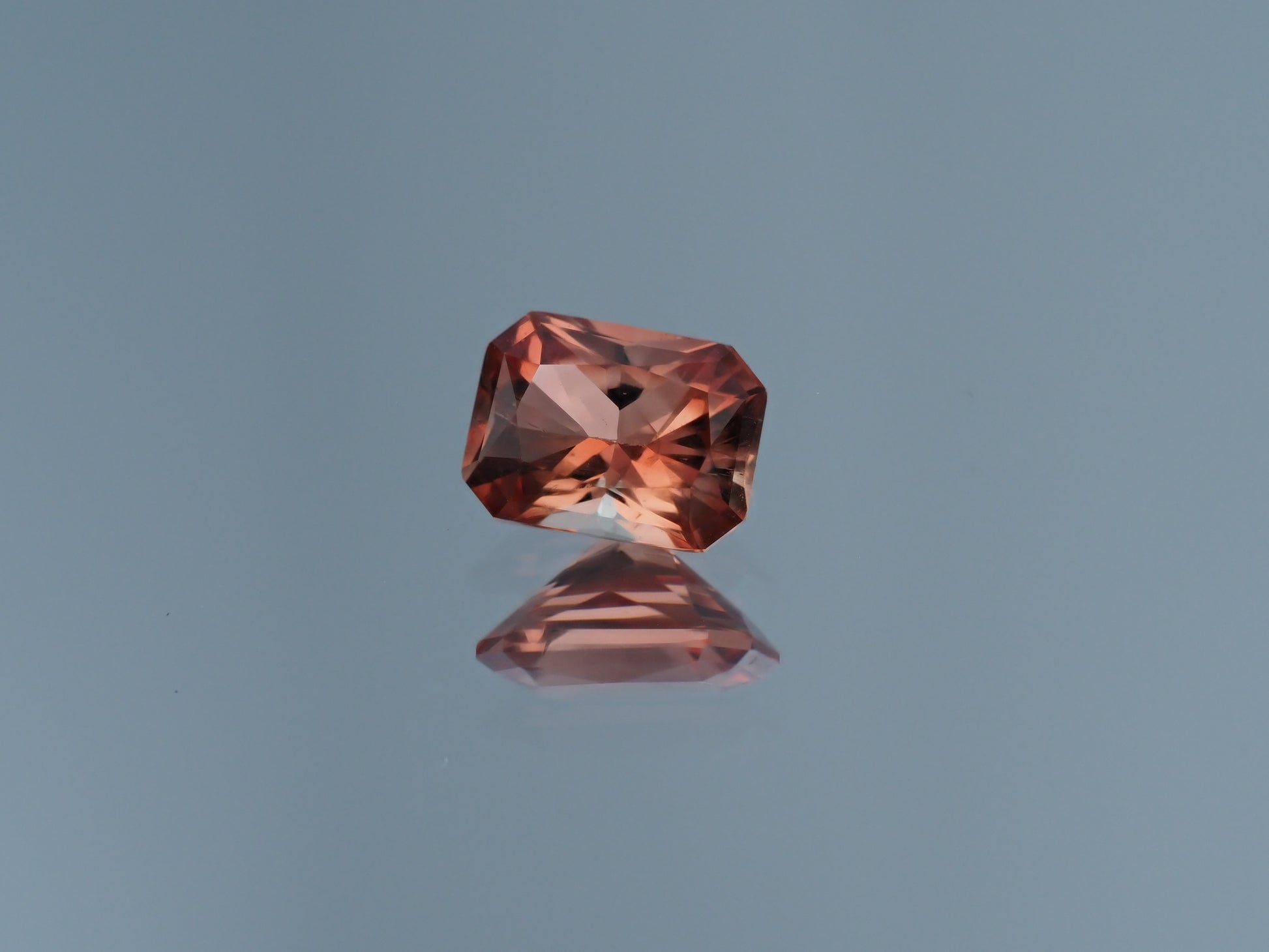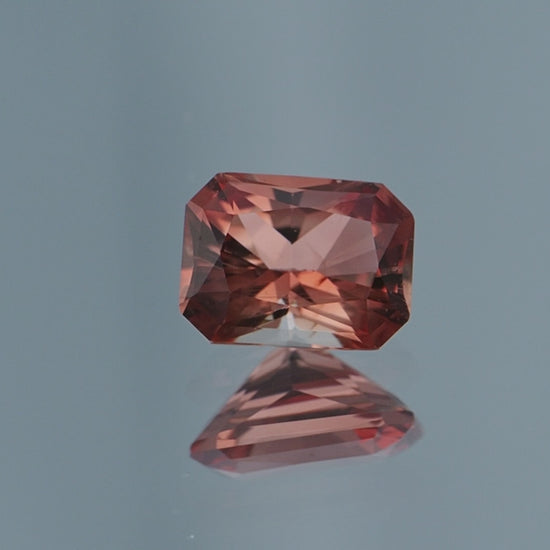 This 1.33 carat radiant-cut Oregon Sunstone, measuring 8mm by 6mm, displays a delightful peachy-red hue that blends warmth and elegance. The gem's color evokes the soft tones of a peachy sunset over Oregon's tranquil landscapes, imbuing it with a sense of natural beauty and serenity. The radiant cut enhances the Sunstone's brilliance with its numerous facets, allowing light to dance across the gem's surface and accentuate its natural sparkle and clarity.