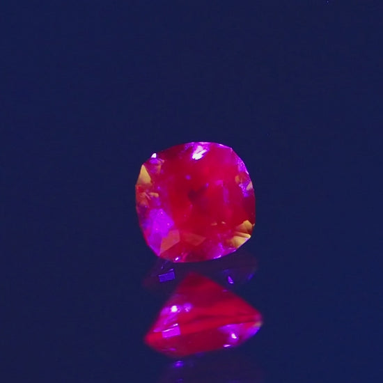 Introducing the “Christmas Garnet,” a synthetic gemstone that captivates with its vivid, bright green hue and elegant cushion cut. Weighing in at 1.32 carats and measuring 6mm, this gem is a true standout, radiating an intensity that is impossible to miss. But the real magic unfolds under UV light, where the garnet transforms, glowing with a brilliant bright red that’s as striking as it is unexpected. The contrast between its lively green color and its stunning red UV glow makes the Christmas Garnet a unique marvel, blending festive aesthetics with a touch of high-tech wonder. Perfect for those who desire a gemstone that combines beauty, elegance, and a surprising twist.